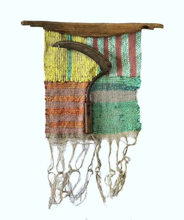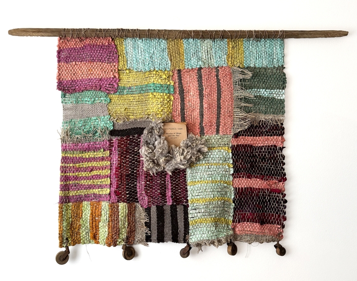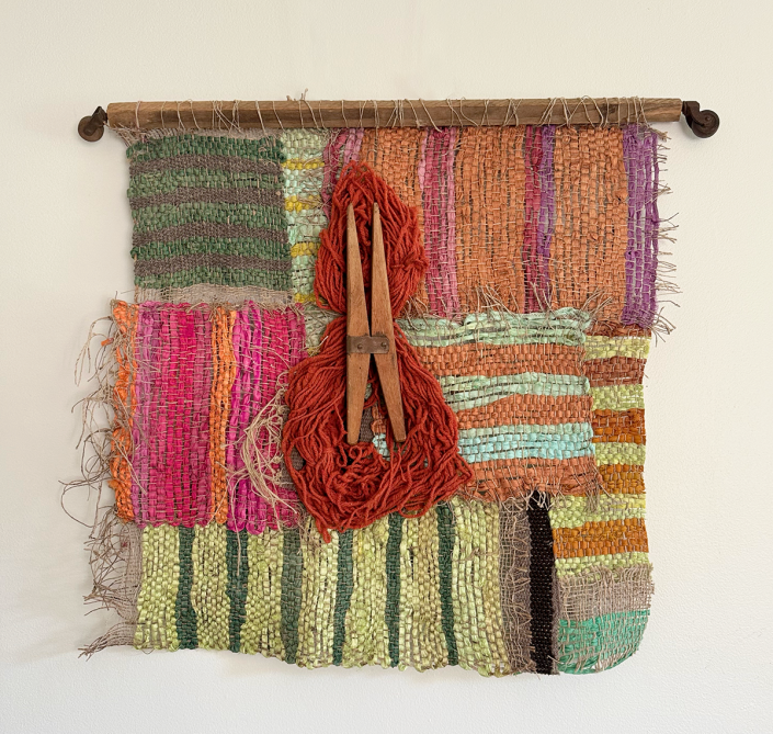 Originally conceived as an homage to the hand tools used by her grandparents in the early 1900s, the series grew into an exploration of the materials themselves. With quiet nods to the influences of Anni Albers and Sean Scully, MADEofTHIS is both playful and reverent. It follows a winding thread from weaving to spinning to dyeing, eventually leading to the raw process of carding and preparing wool from shorn fleeces.